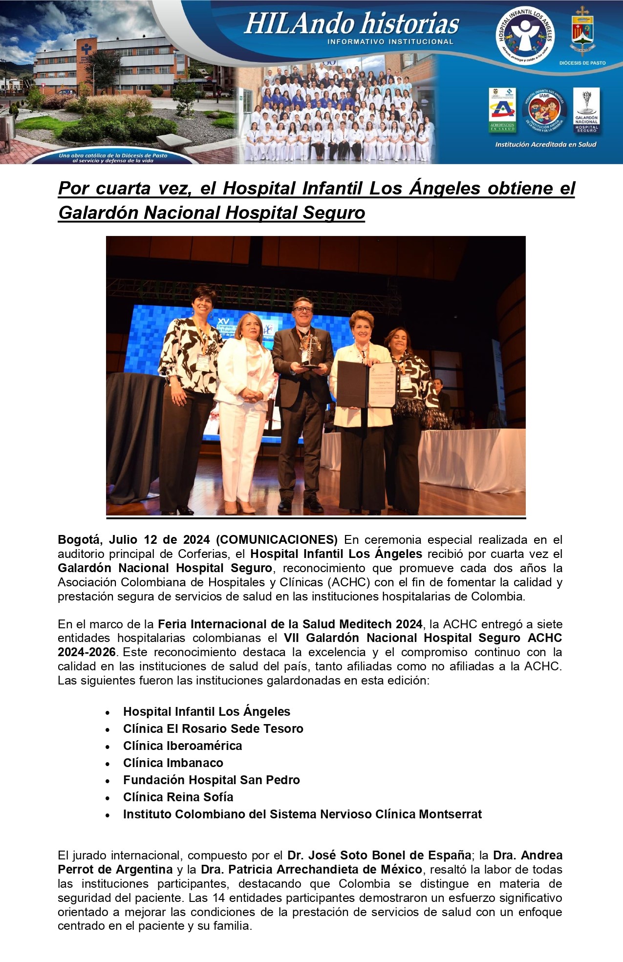 Por cuarta vez, el Hospital Infantil Los Ángeles obtiene el Galardón Nacional Hospital Seguro por HospitalInfantil | Jul 12, 2024 | Sala de prensa, SliderNoticias